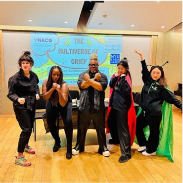 The annual National Alliance for Children’s Grief National Conference, The Multiverse of Grief: A Multicultural + Expressive Arts Approach to being in Relationship with Diverse Grief Narratives, was broadcast nationwide and hosted a live studio audience at New York University. Together, we traversed through a rich galaxy of theory and practice to support children and adolescents dealing with loss. Through the lens of social justice, we explored muliticultural roles and the framework of graphic novels. The event was noted for its heartfelt creativity, expansive education, imaginative interventions and thoughtfulness for diverse childhood bereavement narratives.